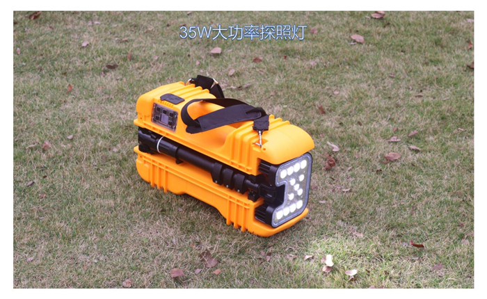 該產(chǎn)品用了20個(gè)18650電池進(jìn)行串并聯(lián),形成了電壓14.8V,容量10Ah的電池組。燈頭用9個(gè)燈珠串并聯(lián),功率達(dá)到27W,光通量相當(dāng)于鹵素?zé)?50W。工作時(shí)間強(qiáng)光10小時(shí),工作光20小時(shí)。重量7kg,尤為輕便。