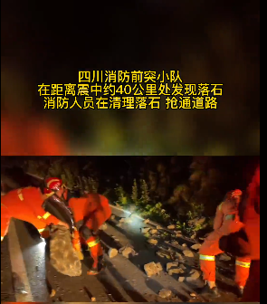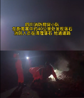 前往增援的阿壩森林消防支隊馬爾康大隊率先抵達腳木足鄉道路塌方處,他們邊組織人員用鐵鍬清理落石塌方,邊調集和重型車輛緊急搶通。