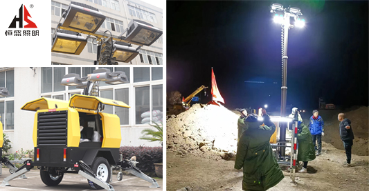 恒盛照明大型發電機照明,4 個1000 W 高效節能燈頭,照明亮度高,覆蓋范圍大,照明遠近兼顧,光源壽命長達1 萬小時以上,特別適合戶外大型作業照明。