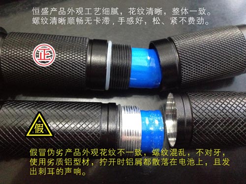 恒盛牌JW7623|JW7620佩戴式強(qiáng)光照明燈外觀花紋細(xì)膩,有質(zhì)感。打開燈具螺絲旋轉(zhuǎn)順暢絲滑。假冒偽劣JW7620佩戴式強(qiáng)光照明燈| JW7623多功能強(qiáng)光巡檢工作燈則精糙,無質(zhì)感可言,松開螺絲費(fèi)勁,有鋁沫脫落。