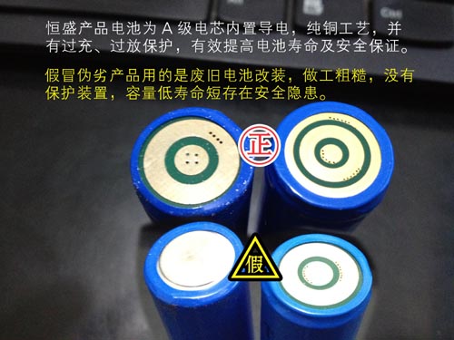 恒盛牌JW7623|JW7620佩戴式強(qiáng)光照明燈選用A級電芯,并加有過充過放保護(hù)裝置。假冒偽劣JW7620佩戴式強(qiáng)光照明燈| JW7623多功能強(qiáng)光巡檢工作燈選用廢棄電池,并沒有任何防護(hù)功能,有安全隱患。