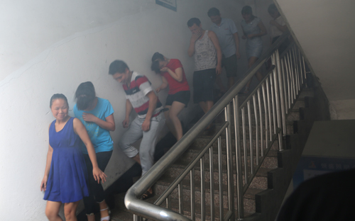 火場逃生演習(xí)要點:必需要用打濕的毛巾捂住口鼻,彎腰或者匍匐沿墻邊走。這樣就不會在濃煙吸入有害煙氣中毒或被火灼傷,彎腰或者匍匐是因為有害毒氣都是往上升,最下層是生命的真空區(qū)。沿墻邊走就不會在火場迷失方向,有墻就有門,總會找到出口,安全退出。