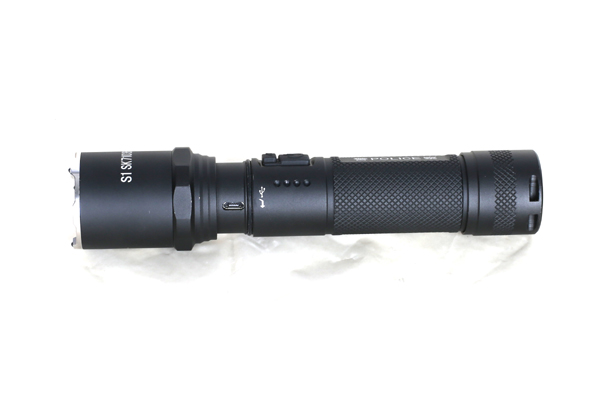 ◆ 前置開關,強光、工作光與爆閃開關區域分開。微電腦控制3段式調光(強光-工作光-爆閃)大開關輕觸轉換強光、工作光或點射。小開關實現爆閃,爆閃光在30米以內能使人瞬間致盲,達到警戒和個人防衛作用。