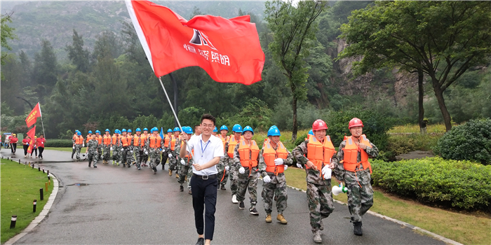 同時我們溫州恒盛照明電器有限公司也參與演練和展會,恒盛照明在下防汛辦指揮協同下,在下雨中高舉旗子同防汛同志一起演練。