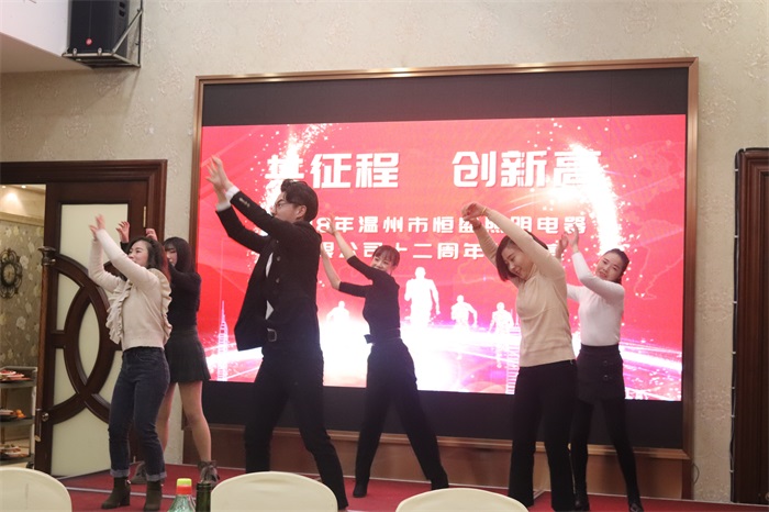聯(lián)系人:劉經(jīng)理2019年1月18日下午,溫州市恒盛照明電器有限公司全體員工宴會在溫州市金銀島大酒店隆重舉行。